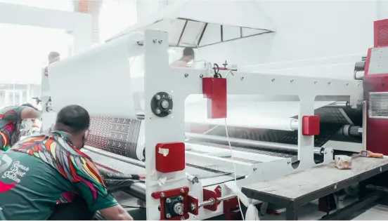 We use 8 industrial printheads Atexco Sublimation Printer which can print up to 300 meters per hour. Very suitable if you need production speed in large quantities.